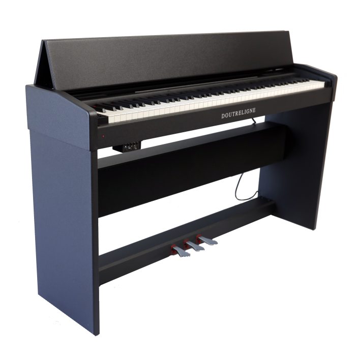 De Doutreligne MHP-2000S heeft een zwart gesatineerde afwerking en kenmerkt zich door een slank en modern ontwerp, ideaal voor compacte ruimtes. Met een diepte van slechts 36 cm past deze piano moeiteloos in kleinere kamers zonder in te boeten aan functionaliteit. Het meubel heeft een strakke en eigentijdse uitstraling, met een afsluitbare klep die, wanneer gesloten, een vlak tafelblad vormt. Dit ontwerp detail draagt bij aan een opgeruimde en nette look wanneer de piano niet in gebruik is.