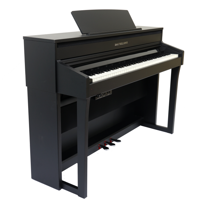 De Doutreligne MHP-3000 heeft een robuuste, zwart gesatineerde afwerking en straalt de degelijkheid uit van een echte akoestische piano. Het stevige meubel heeft een klassiekere uitstraling met een moderne twist, waardoor het een statement maakt in iedere ruimte. Het strakke ontwerp biedt uitstekende stabiliteit, terwijl de gebruiksvriendelijke bediening via het LCD-scherm het navigeren door functies vergemakkelijkt.